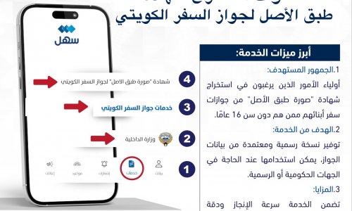 خطوات استخراج شهادة طبق الأصل لجواز السفر الكويتي للأبناء دون ال 16 عاماً عبر تطبيق سهل