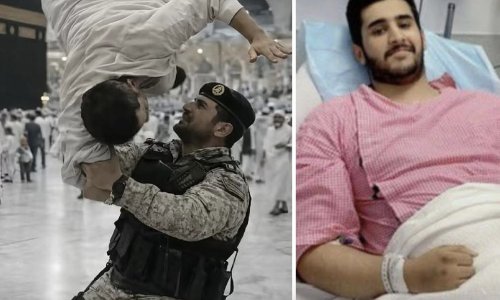 موقف بطولي لرجل الأمن السعودي ينقذ معتمراً تعمد إلقاء نفسه من الأعلى "منع ارتطامه بالأرض وحماه بجسده"