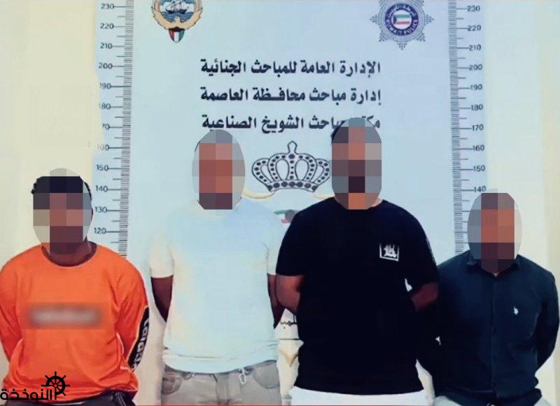 تمكّن قطاع شؤون الأمن الجنائي ممثلاً في الإدارة العامة للمباحث الجنائية – إدارة مباحث محافظة العاصمة من ضبط تشكيل عصابي مكوّن من 4 أشخاص من الجنسية الإفريقية، قاموا بسرقة مبالغ مالية من مركبات في منطقة الشويخ الصناعية.