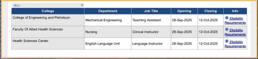 النوخذة Alnokhitha - التربية والتعليم - توظيف في جامعة الكويت لحملة شهادات الماجستير التخصصات: هندسة ميكانيكية/ تمريض/ لغة انجليزية
