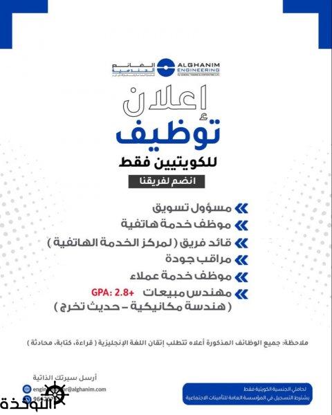 إعلان توظيف للكويتيين فقط في شركة الغانم الهندسية
