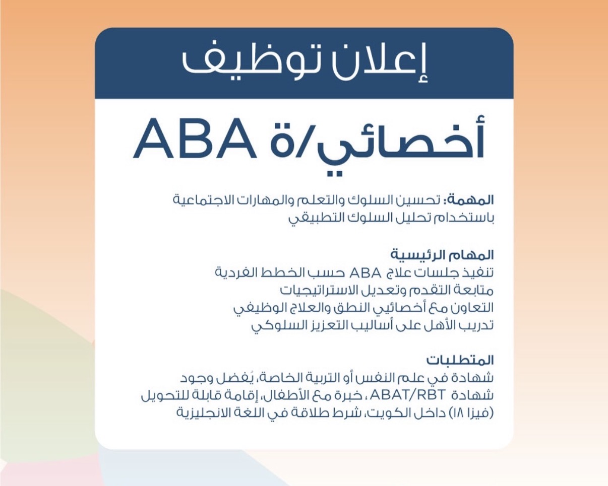 مركز متخصص في تقديم الاستشارات العلاجية للاطفال وحاصل على الاعتماد في تحليل السلوك التطبيقي بوجود محللة سلوك معتمدة BCBA ![]() ![]() ![]()