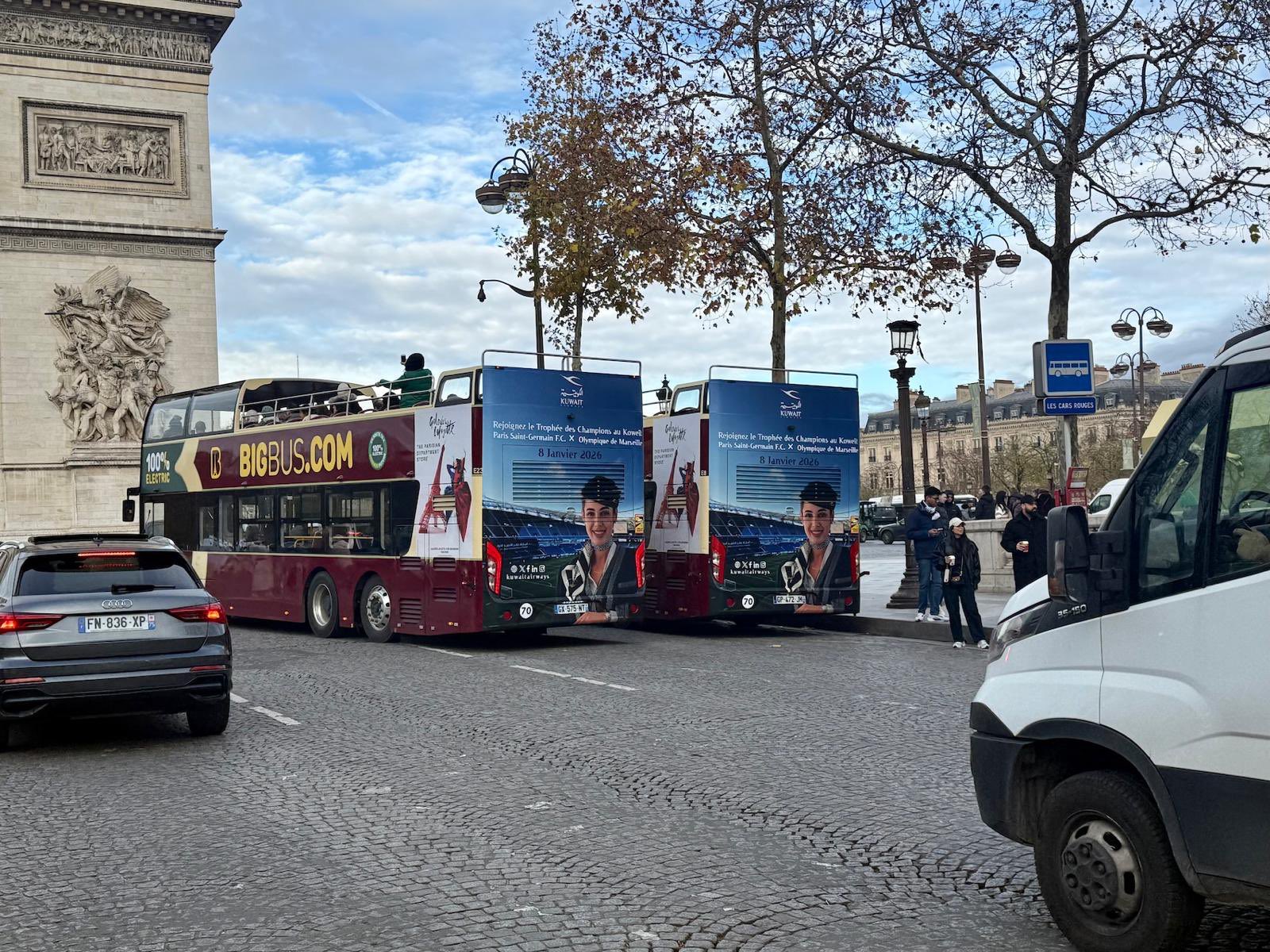 النوخذة Alnokhitha - رياضة - حضور كويتي فاخر في قلب باريس .. إعلانات الخطوط الجوية الكويتية تزيّن الباصات السياحية