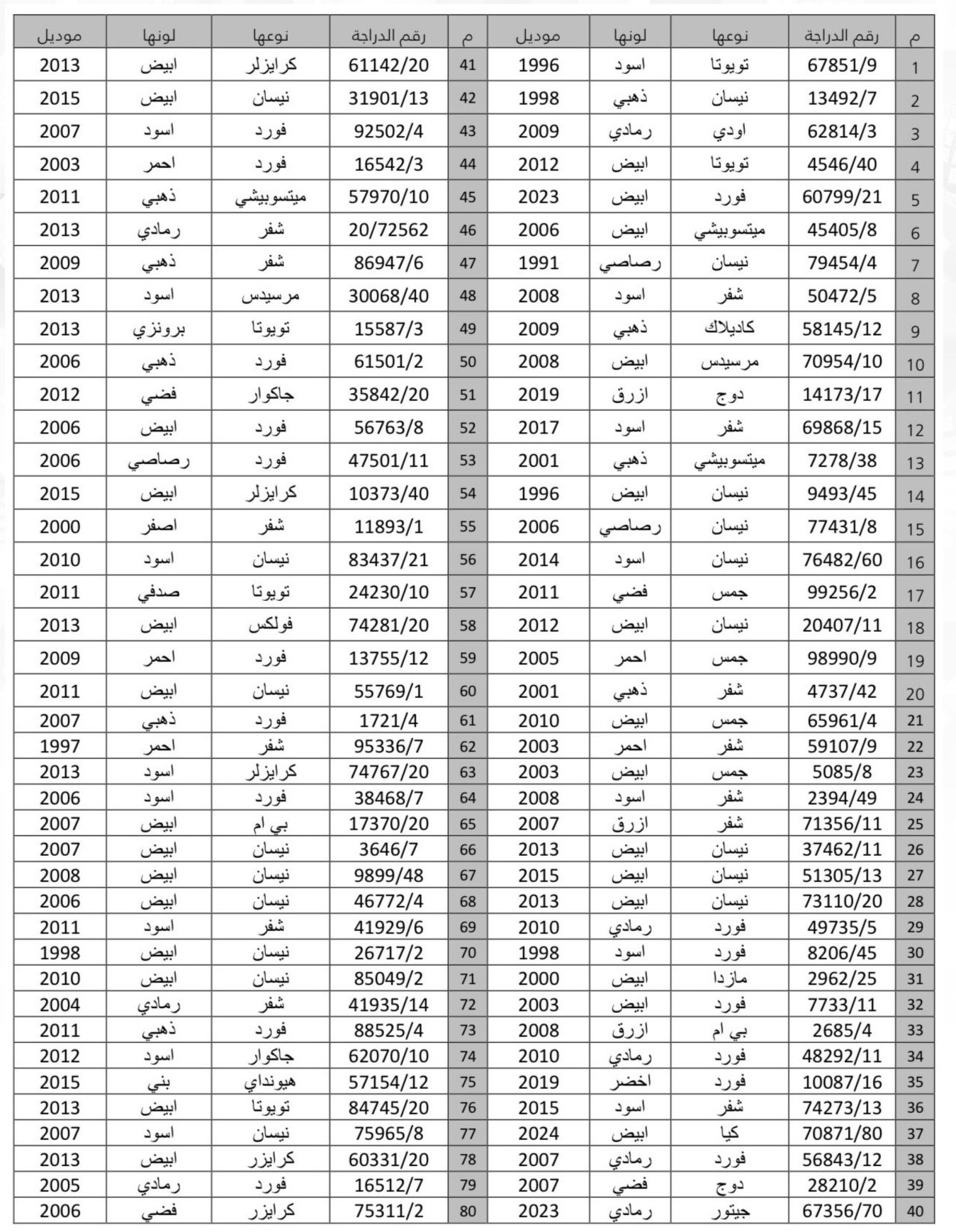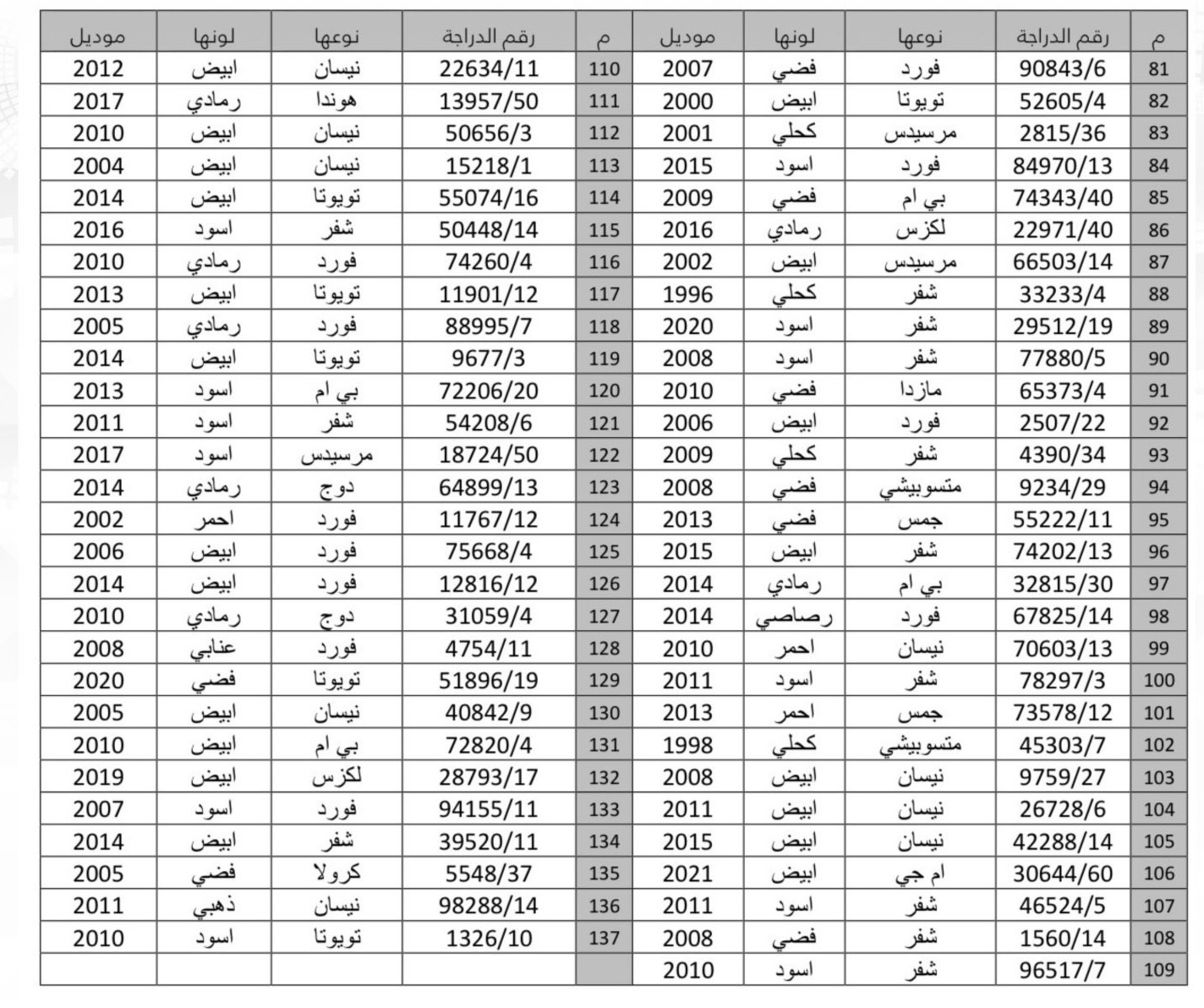 وزارة الداخلية تعلن عن مزاد علني لبيع السيارات المحجوزة