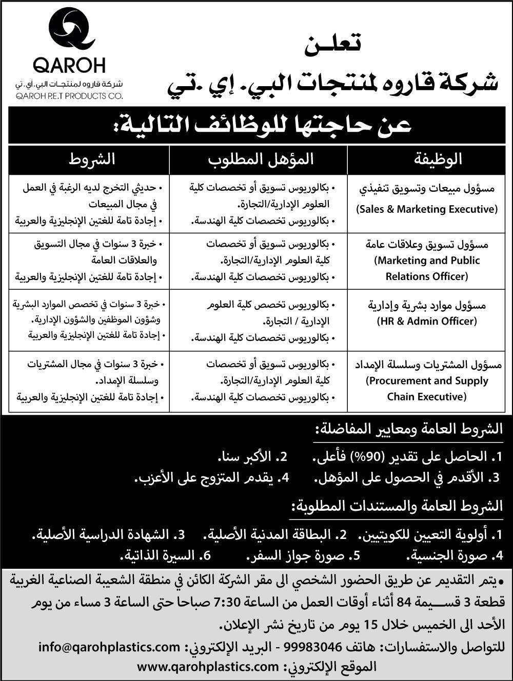 - فرص وظيفية في شركة قاروه ( الأولوية للكويتيين )