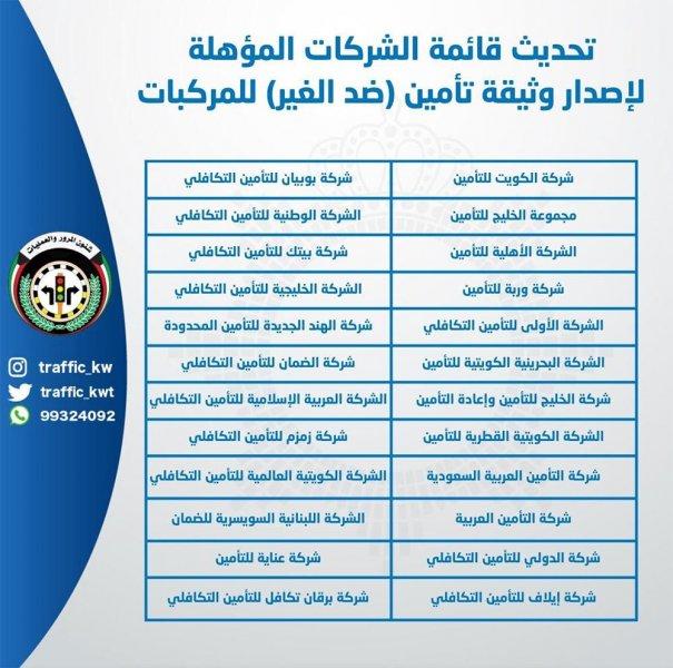 النوخذة Alnokhitha - الكويت - المرور : تحديث قائمة الشركات المؤهلة لإصدار وثيقة تأمين "ضد الغير" للمركبات